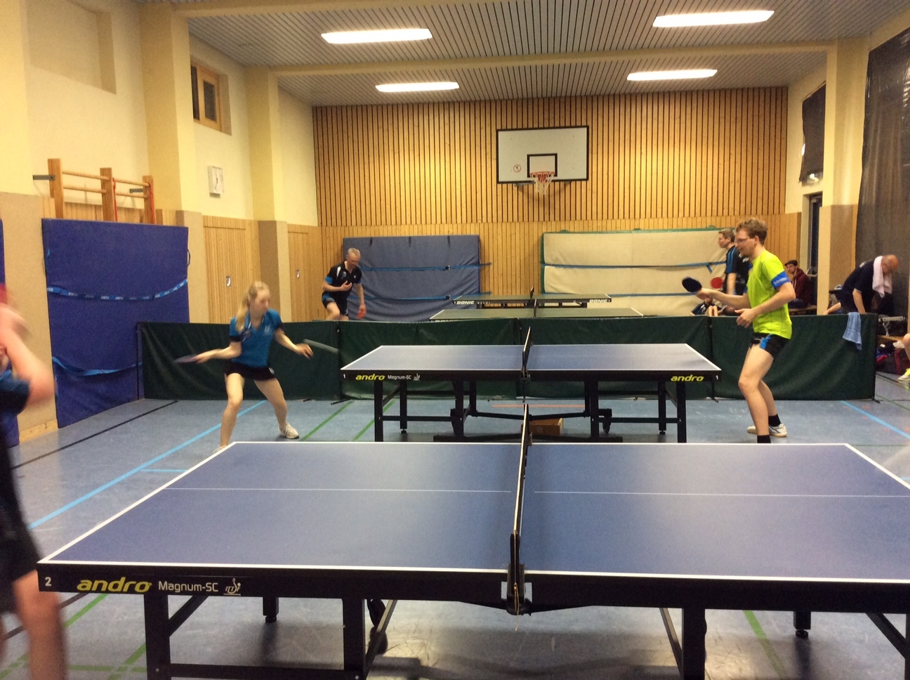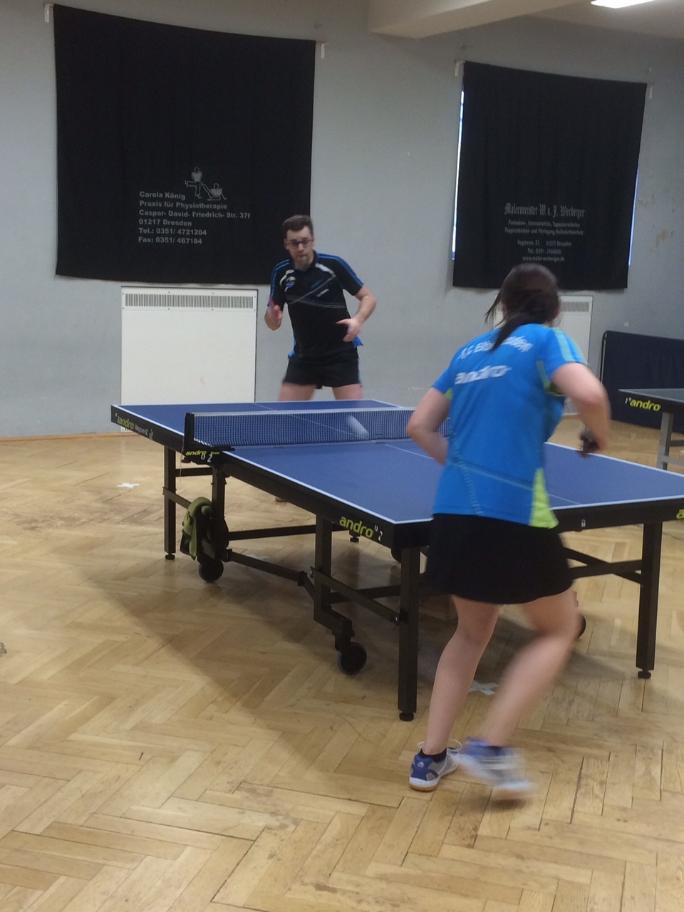 Am Ende waren dennoch sehr gute Spiele zu sehen, in welchen sich in Gruppe 1 Matze Bachmann/Philipp Schulz und in Gruppe 2 Helen Seifert/Tim Taubert durchsetzten und in einem Finale den Doppelchampion kürten. In diesem Spiel sollten sich die beiden Herren aus der Landesliga durchsetzten, wobei Tim und Helen dennoch zu überzeugen wussten.