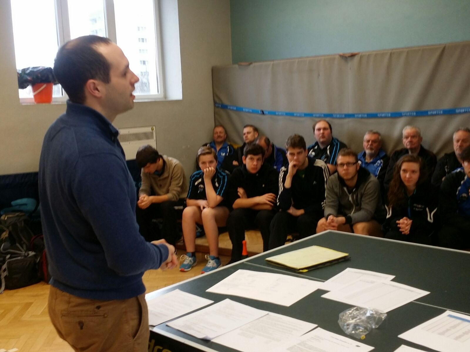 Nach einer in diesem Jahr sehr langen Mitgliederversammlung begann das Turnier gegen 9:45 Uhr traditionell mit der Doppelkonkurrenz. In insgesamt 8 Gruppen mit je 3 Doppeln wurde der Doppelchampion des Vereins gesucht, wobei der Spaß nicht zu kurz kommen sollte, insbesondere da der Platz nicht gerade als ausgiebig bezeichnet werden kann und einspielen nur minimal möglich war.